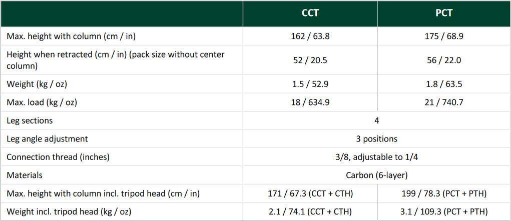 · Detachable center column (allows the CCT to be packed in a carryonbag)